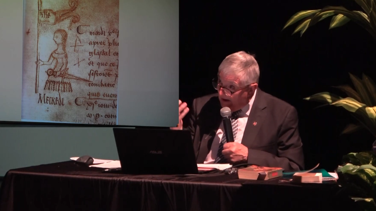 Le conférencier; le Père Georges PASSERAT — médiéviste reconnu pour ses travaux de recherches universitaires approfondies sur le sujet — a proposé une intervention dense et rigoureuse, articulée autour des sources historiques majeures. Il s’est notamment appuyé sur le corpus incontournable de Régine PERNOUD, autrice tutélaire, dont les recherches ont largement contribué à réhabiliter une lecture plus fidèle et documentée de Jeanne d’Arc au XXe siècle. À cette base solide, il a ajouté des analyses issues de travaux plus récents, venant confirmer et enrichir les connaissances sur le procès de réhabilitation ouvert en 1450 et conclu en 1456.