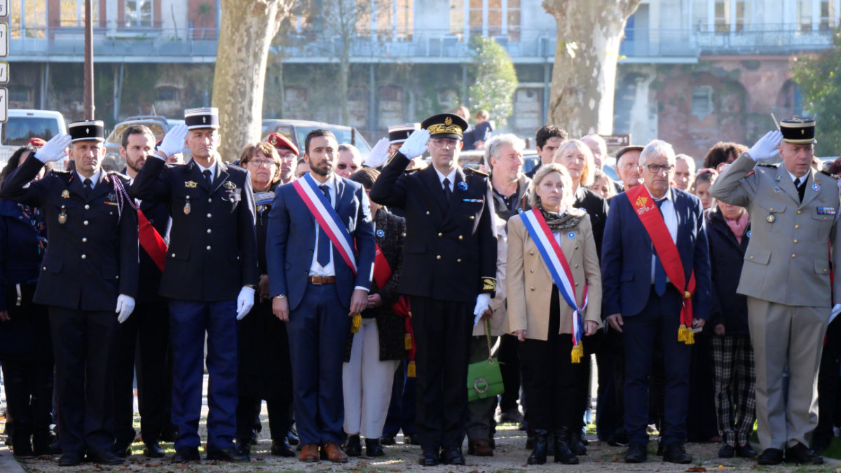 Ce mardi matin, le froid n’a pas découragé les Moissagais. Devant le monument aux morts de 1870 du square Demeurs, des dizaines de drapeaux se sont inclinés dans un silence dense, presque palpable.