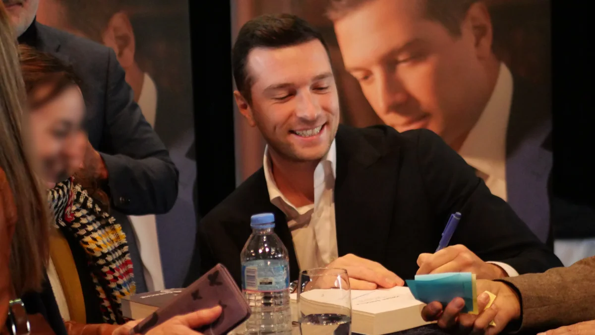 Quand Jordan Bardella fait son entrée dans le Hall de Paris, la salle réagit immédiatement : une Marseillaise spontanée s’élève, suivie d’un « Jordan président » lancé par une partie du public. L’atmosphère est dense, entre ferveur, curiosité et cliquetis des téléphones déjà levés. Quelques minutes plus tard, avant les signatures, l’eurodéputé répond aux journalistes.